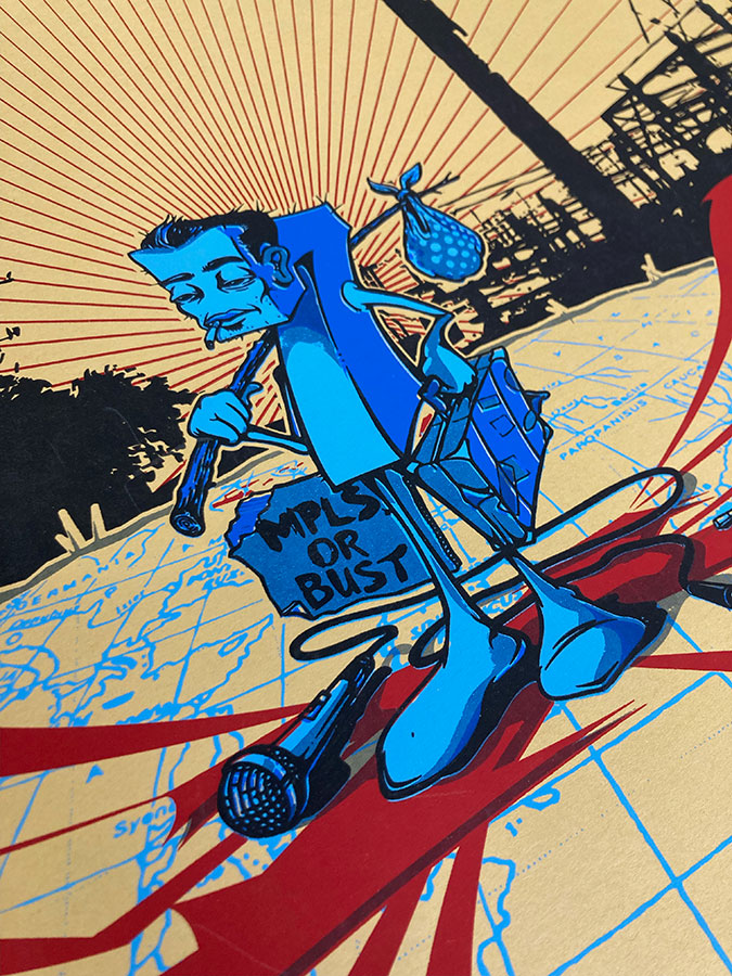Designed by George Thompson with Wes Winship and Mike Davis, screenprinted by Wes Winship at Souf Side Printing (AKA his basement). This is the very first poster Mike worked on with Burlesque after moving to Minneapolis in September 2003.
