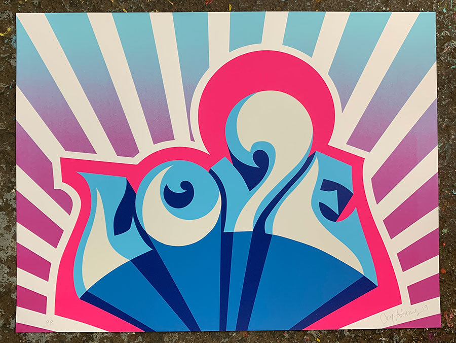 Alternate colorway of Cey Adams' LOVE print, produced specially for the Art For Tibet series.