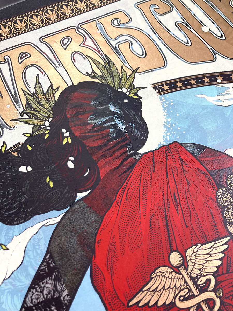 One-of-a-kind test print featuring layers from Richey Beckett's "Cannabis Cup" print, Becky Cloonan, and more.