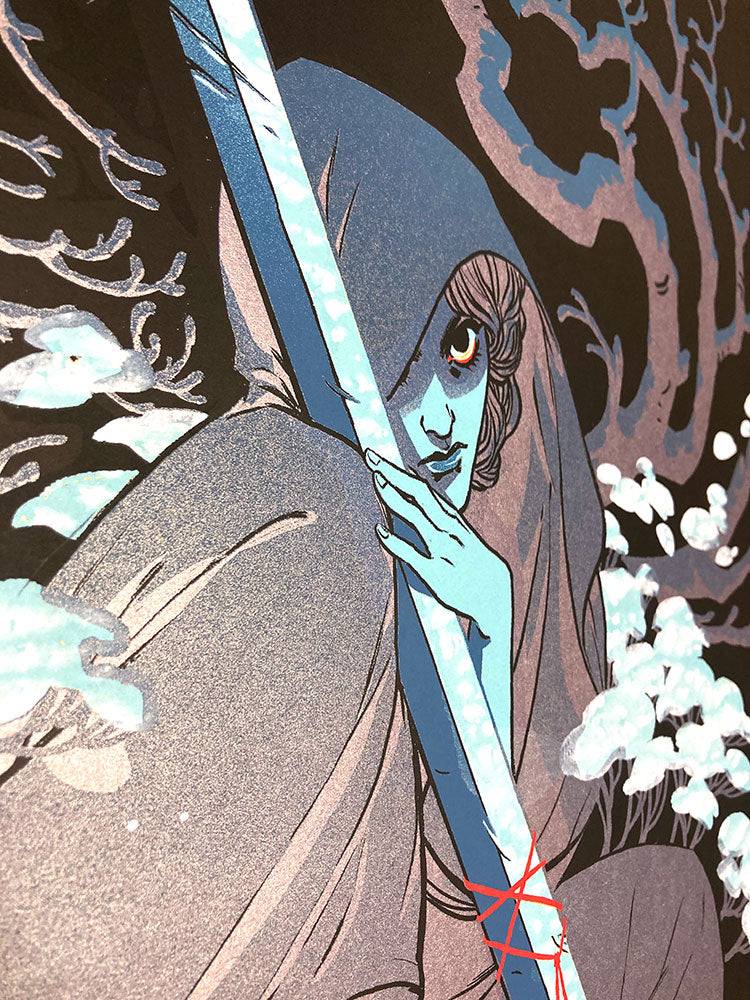 One-of-a-kind test print featuring metallic ink layers from Becky Cloonan's By Chance Or Providence plus Richey Beckett on the back.