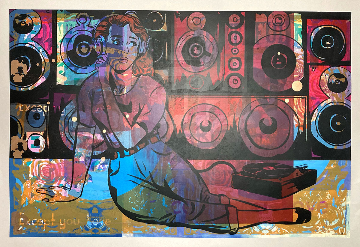 One-of-a-kind test print featuring layers from Twin Cities-based artist Biafra Inc. and many others.