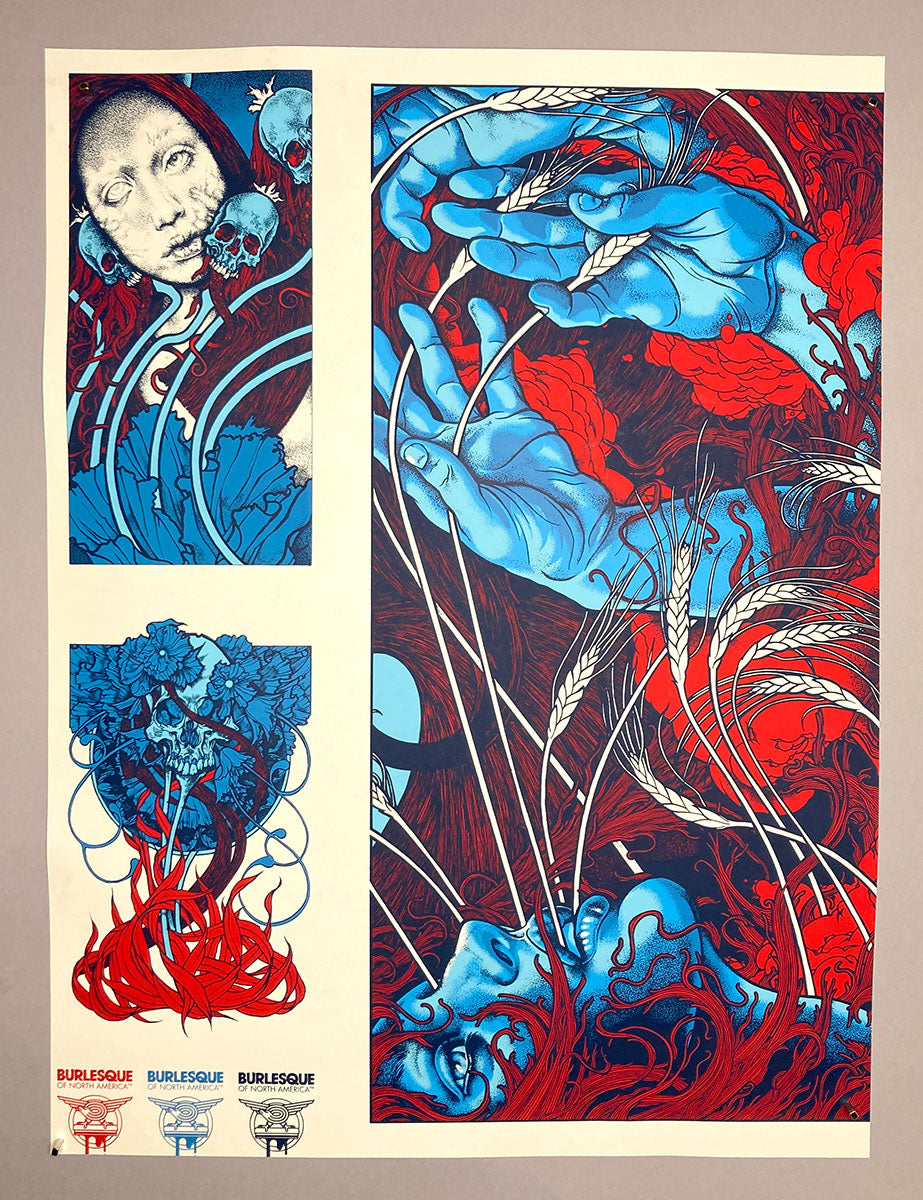 One-of-a-kind test print featuring layers from several works by artist John Baizley. This one is two-sided!18 x 24"