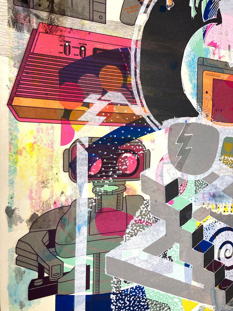 One-of-a-kind test print featuring layers from Mike Davis' Tools Of The Trade (Video Game edition) and more.20 x 26"