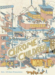 We had the opportunity to design and screenprint a poster for Stones Throw Records' "Chrome Children" tour. The string of Fall 2006 live dates featured live performances from rapper Percee P and DJs Peanut Butter Wolf, Madlib, and J. Rocc, all in support of "Chrome Children," a compilation of songs from Stones Throw artists co-released by the folks at Adult Swim.