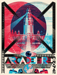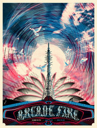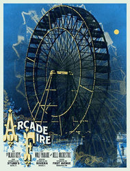 Wes Winship's infamous ferris wheel print for Arcade Fire's late September 2005 tour stops in Austin, Chicago, and Minneapolis is one of our most asked-about posters. We think all the answers are right there in the poster itself. Just have a look... Stare into the ferris wheel.. Yessssssss...