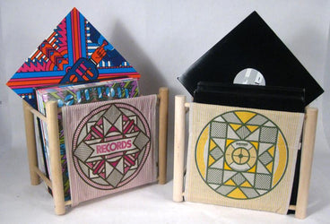 Might we recommend our made-from-scratch record case? It features wooden dowels hand-cut by Wes and Larry Winship, not one but two super hot geometric vector designs by Mike Davis, screenprinted by Peter Bekke onto canvas which was cut and sewn by Jodi Milbert. If that's not a team effort, then we don't know what is.